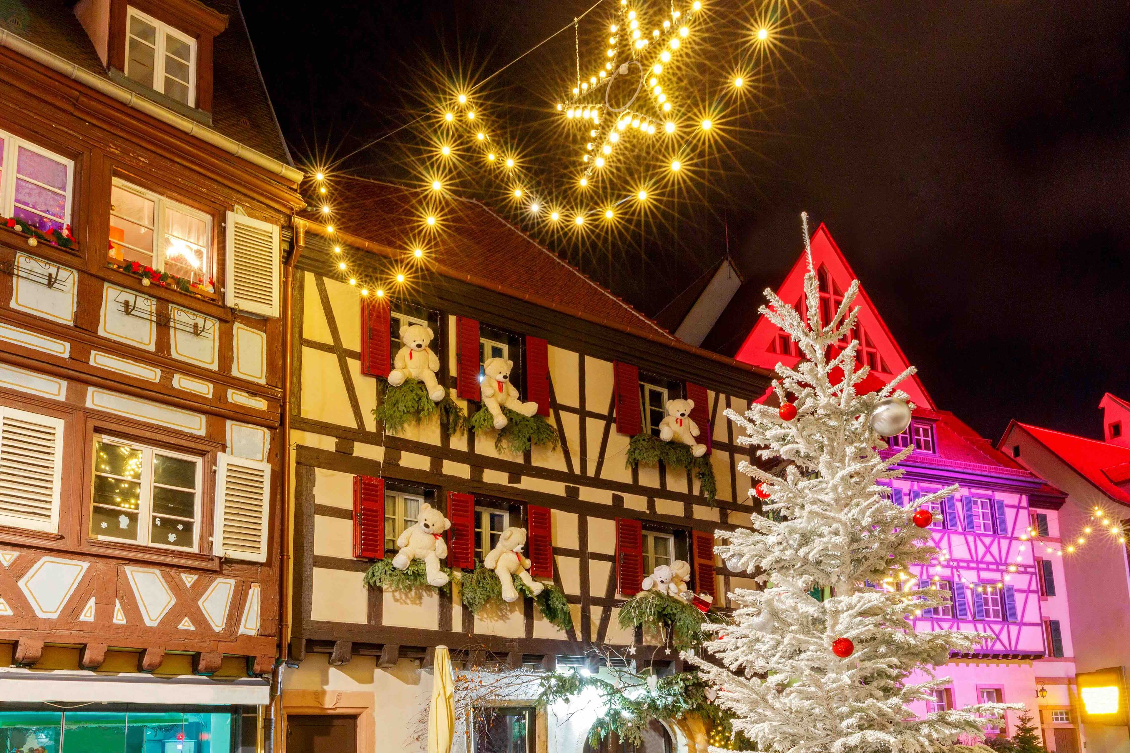 Берите в руки стаканчик глинтвейна и отправляйтесь гулять по украшенным улочкам — это настоящее путешествие в сказку. Слегка морозная погода (обычно около -8 °C) и яркие огни на фоне средневековых фахверковых домов создают невероятную атмосферу. Если захочется продолжения, садитесь на поезд, и через полчаса вы окажетесь в Кольмаре, а через час — в Мюлузе. Эти крошечные городки в регионе Эльзас выглядят как ожившие рождественские открытки.