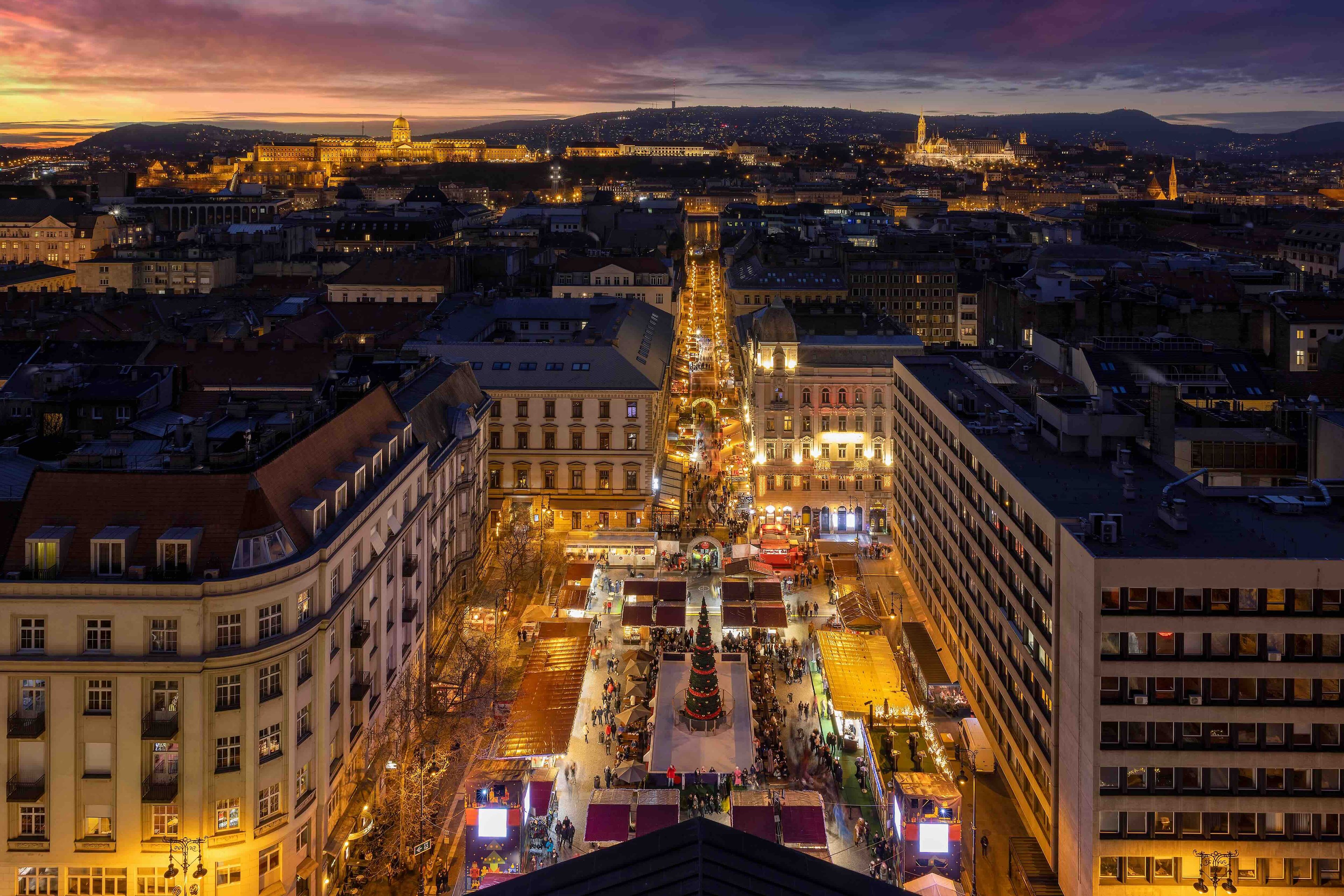 Готовиться к Рождеству в Будапеште начинают с конца октября, но основной движ, конечно, в декабре. По всему городу открываются большие ярмарки. Главная — на площади Вёрёшмарти (Vörösmarty tér), на туристической Fashion Street. Улицу украшают ёлками и гирляндами, а на самой ярмарке повара и продавцы предлагают еду и вещи ручной работы. Именно здесь можно съесть знаменитые на всю Европу лангош и гуляш.