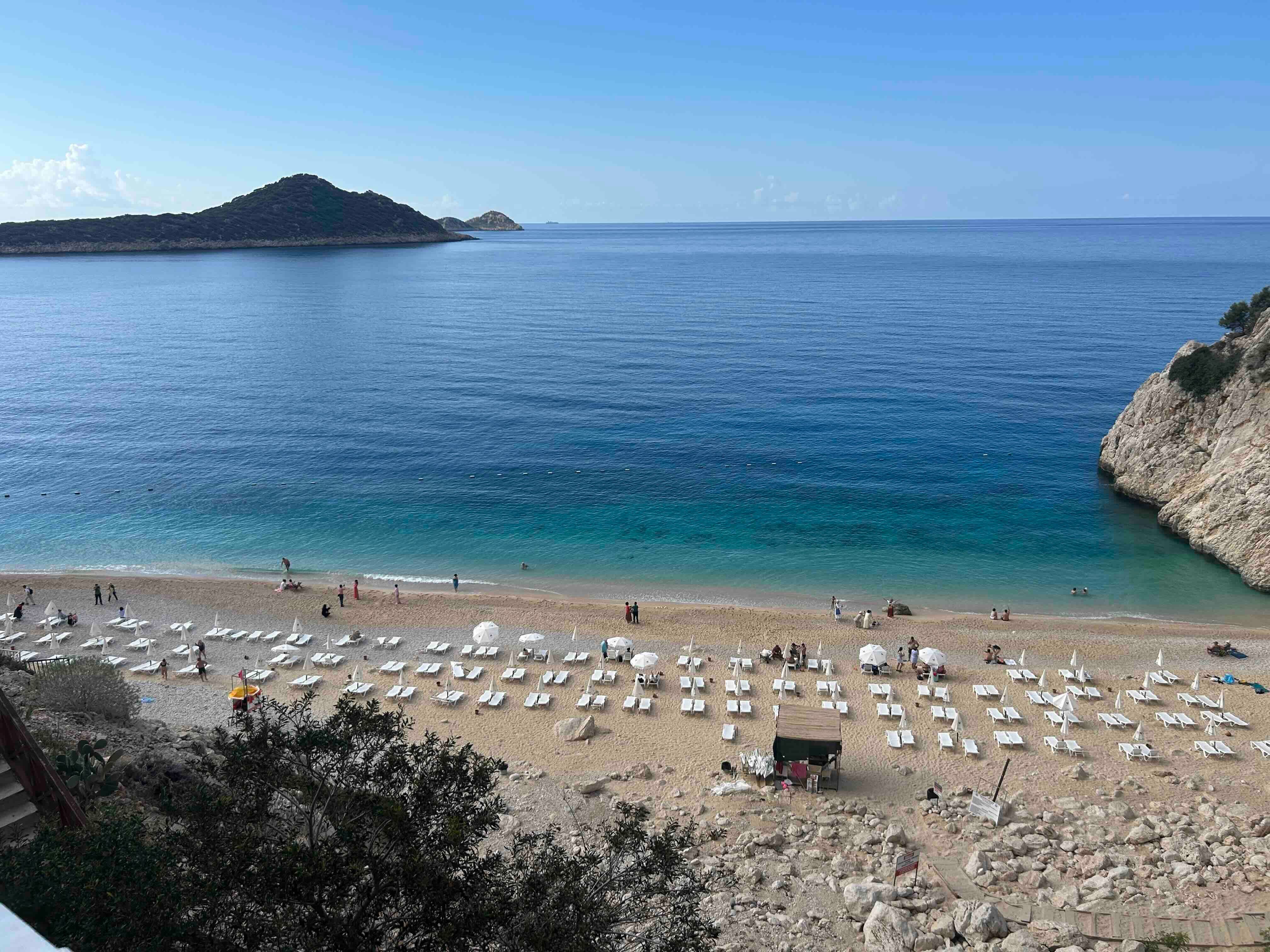 Калканнан бізге әбден ұнаған долмушпен әйгілі Капуташ жағажайына бардық. Бұл — шынымен де ең әсем жағажайлардың бірі. Бірақ турист аз кезде, ерте таңертең барған дұрыс.